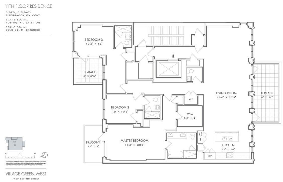 Village Green West is a boutique, 27 unit, 12 story, full-service condominium. The building is close to multiple subway lines (ACE, 123, L train) and the cross-town bus. The building has a 24-hour doorman, a common rooftop garden, virtual concierge, bicycle storage, and resident lounge with a fitness center, entertainment lounge, sauna and treatment room.