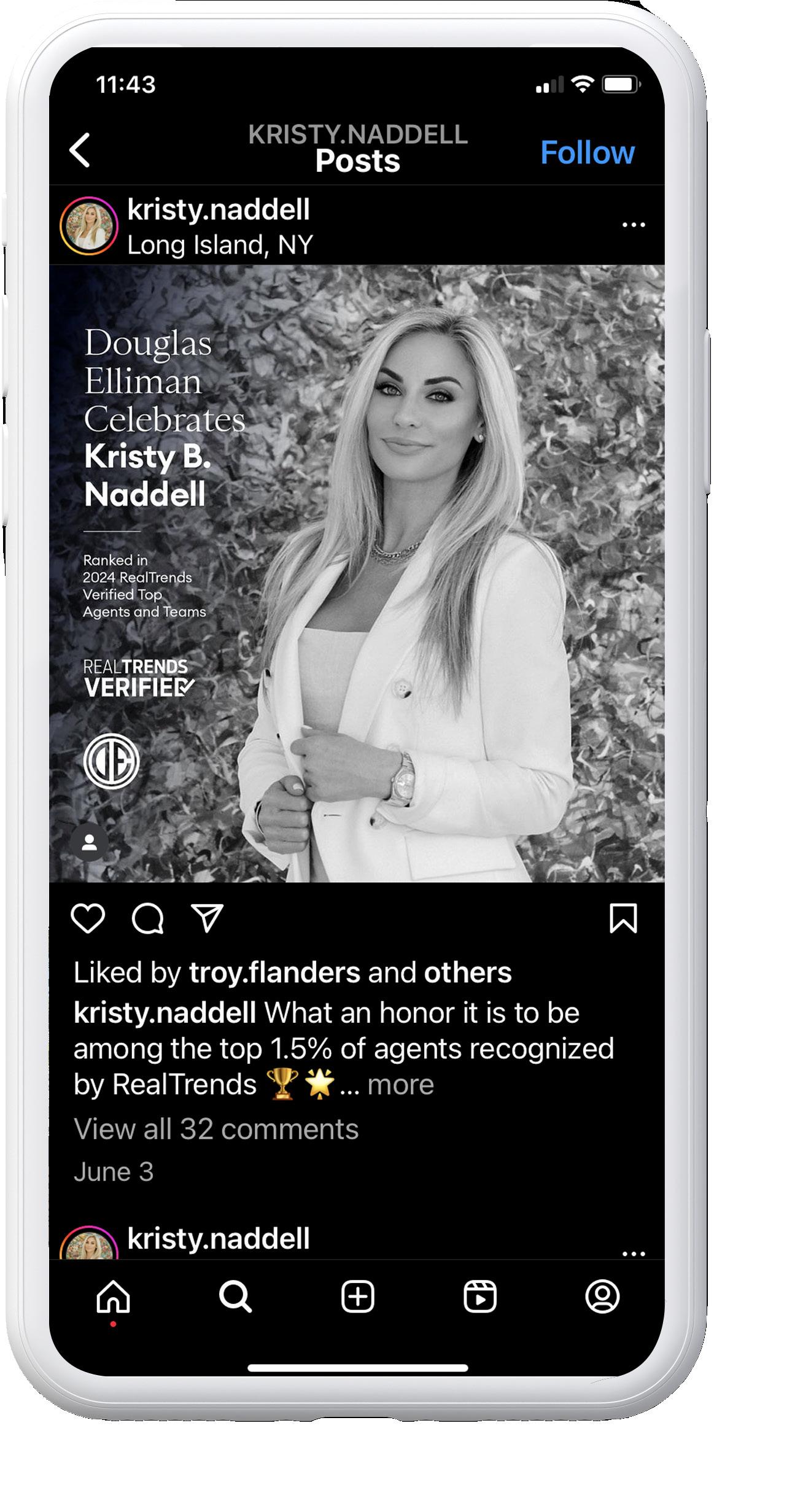 Kristy values her role with the company and the skills she’s gleaned throughout her years as a broker. She puts this experience to use within Douglas Elliman serving as an instrumental mentor helping and training new agents, and works as a team leader organizing and participating in events for Douglas Elliman.