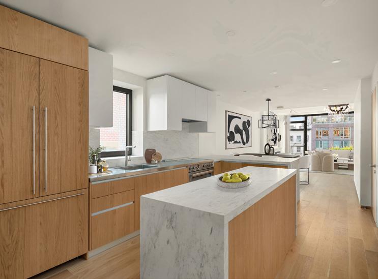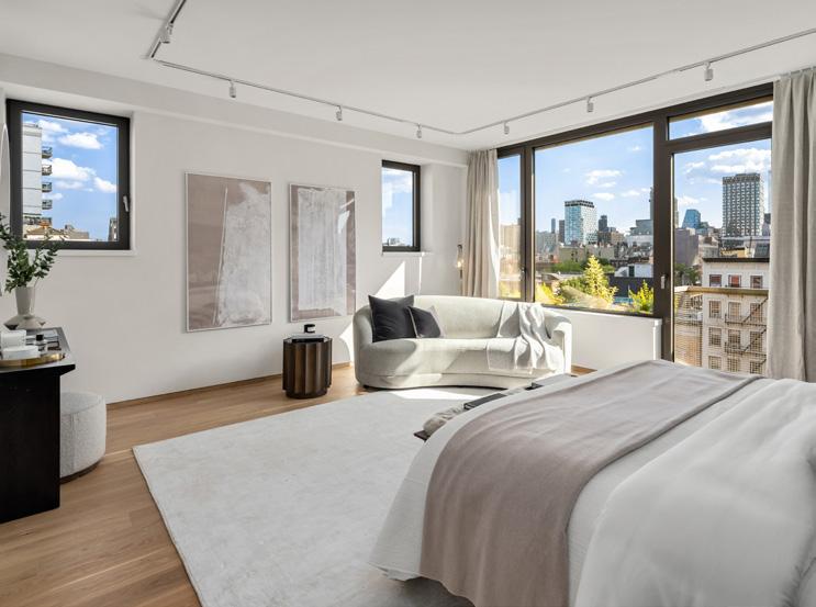 relaxing. Finishes throughout are of the highest quality, balancing old-world artisanship with the latest in technology, from continuous fresh-filtered air to the Akuvox R295 virtual doorman system. Surrounded by the famously bohemian cafes, restaurants and night-spots of the East Village, including such standbys as Katz’s Deli, Lucien, Russ & Daughters, Dirty French and Prune, the building literally overlooks the historic streets of the LES, where cultural centers such as The New Museum and the International Museum of Photography, art galleries and emporiums hum with creative energy. Equinox is across the street, Whole Foods a block away.