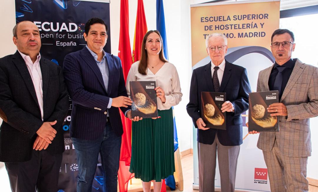 También se desarrollaron 2 Masterclass. La primera en El Ferrandí Ecole de Cuisine en París, donde los chefs ecuatorianos enseñaron a los asis tentes a preparar los diferentes platos de la Guía Culinaria del Banano. En este evento estuvo presente el Embajador de Ecuador en Francia, Ós car Orrantia; la Prefecta del Guayas Susana González; Juan Patricio Na varro de la Oficina Comercial de Ecuador en París (ProEcuador); prensa gastronómica especializada, foodies, estudiantes de Ferrandí y autorida des de AEBE.