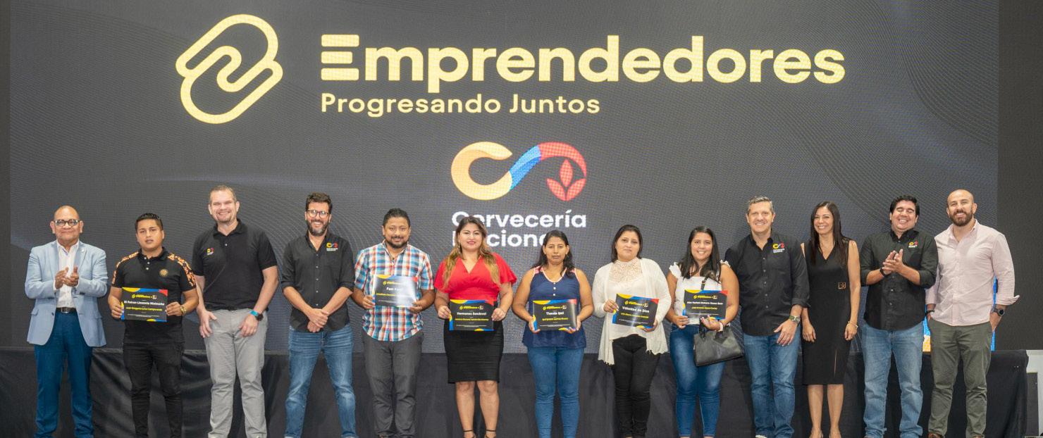 Cristóbal Gaytán, Director Nacional de diseño y desarrollo de soluciones, Vicerrectoría de Educación Continua del Tecnológico de Monterrey (primero izq.) junto a representantes de Cervecería Nacional y emprendedores..