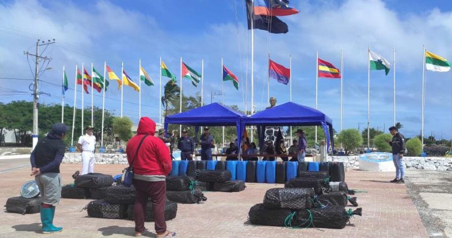 El hecho ocurrió a una distancia de 135 millas náuticas, al sur de la Isla San Cristóbal, en Galápagos donde se halló 25 sacos de yute en una lancha.