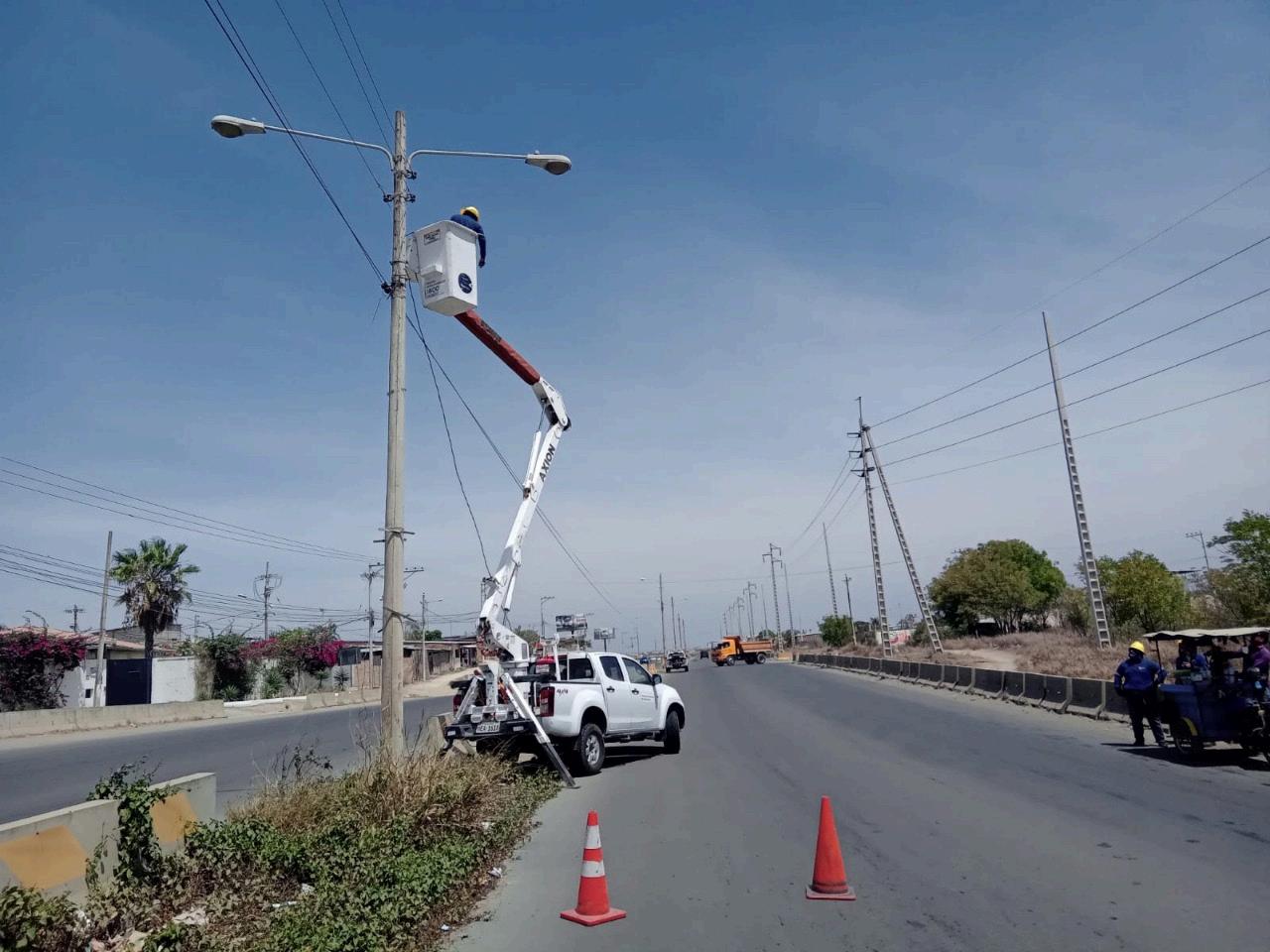 Los trabajos estarán listo a finales de octubre del presente año y con sisten en el mantenimiento de 320 luminarias, desde el redondel de Los Eléctricos hasta el redondel de la Tejedora; además, la instalación de un trasformador y 1300 metros de redes. Adicional, durante lo que va de este mes nuestros téc nicos han arreglado 147 lámparas en diferentes sectores del cantón Manta.