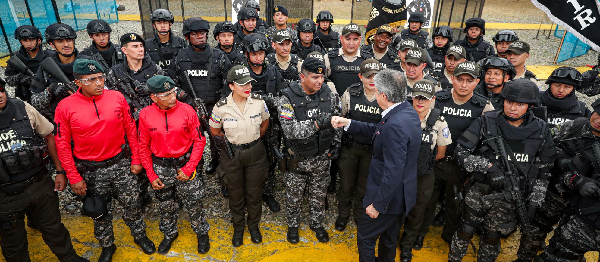 El Gobierno del Ecuador fortalece a las fuerzas del orden para combatir la inseguridad y al narcotráfico. Por ejemplo, se efectuó la adquisición de chalecos antibalas, se inició el reentrenamiento policial para que sus efec-