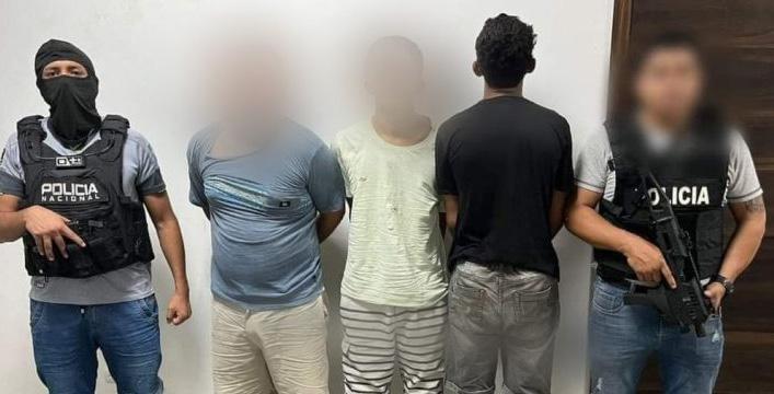 La unidad de seguridad UNASE detuvo a tres individuos, entre ellos un menor de 14 años, por su presunta participación en actos de extorsión en Pedernales, Manabí. Así lo informó la Policía. Los detenidos, identificados como Jhan C. G. L., de 19 años, Adolfo C. S., de 23 años, y un menor identificado como Washington V. P., presuntamente llevaron a cabo múltiples intimidaciones y exigieron una suma considerable de dinero a su víctima a través de mensajes.