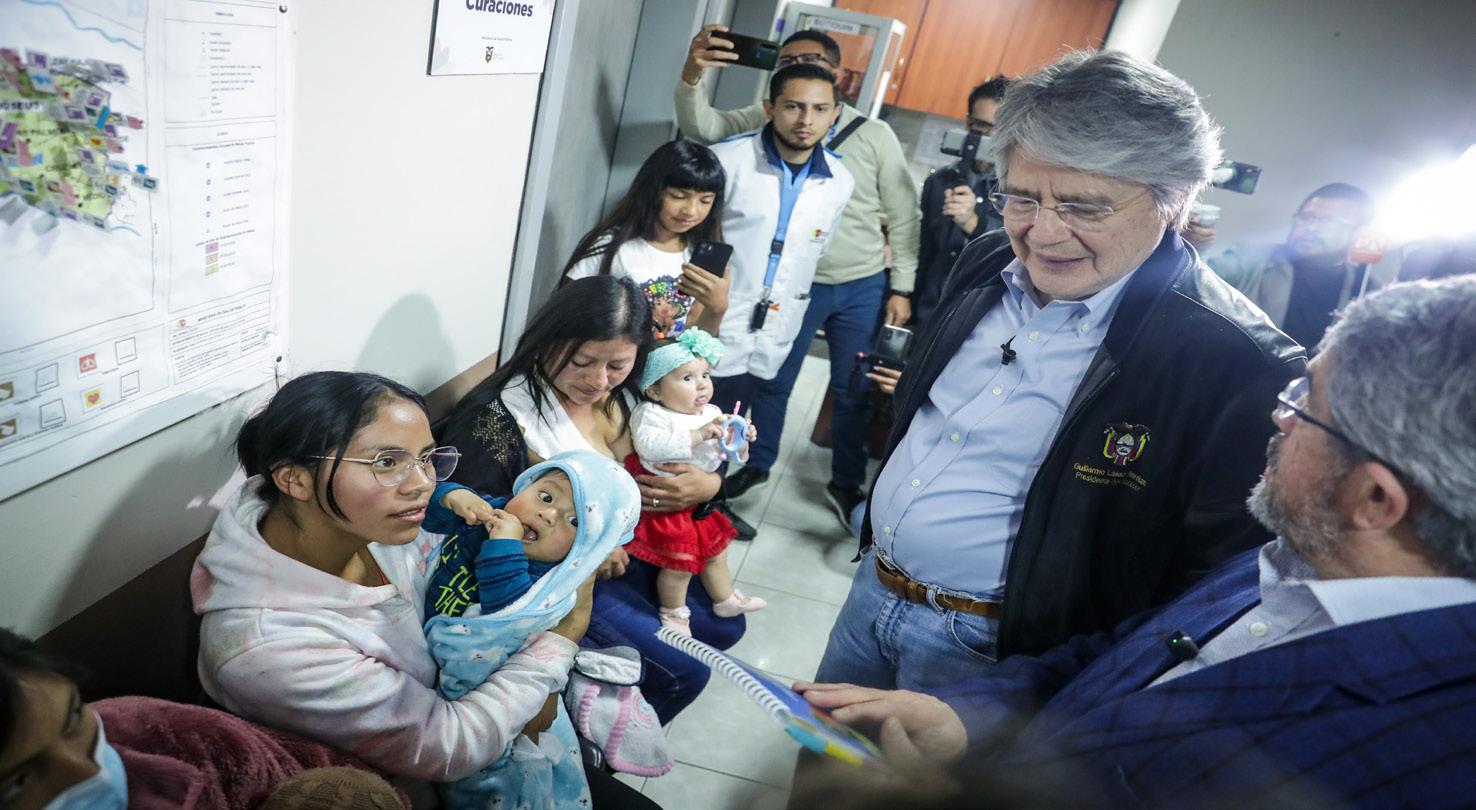 El Presidente de la República, Guillermo Lasso, verificó los servicios de salud o ‘paquete priorizado’, para mujeres embarazadas, niñas y niños menores de 2 años en el centro de salud San Joaquín de Cuenca.