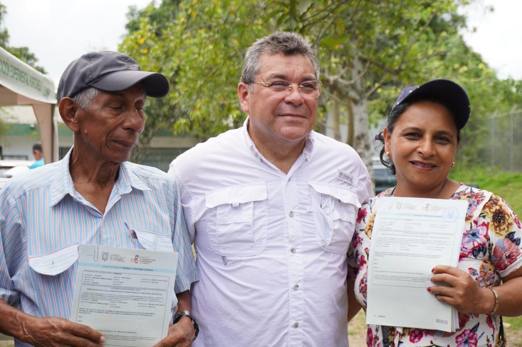 Ochocientos ochenta y seis pequeños productores de Manabí se benefician con la entrega de títulos de propiedad de tierra, insumos agrícolas certificados de Agrocalidad y cheques de CampoSeguro por parte del Ministerio de Agricultura y Ganadería (MAG).