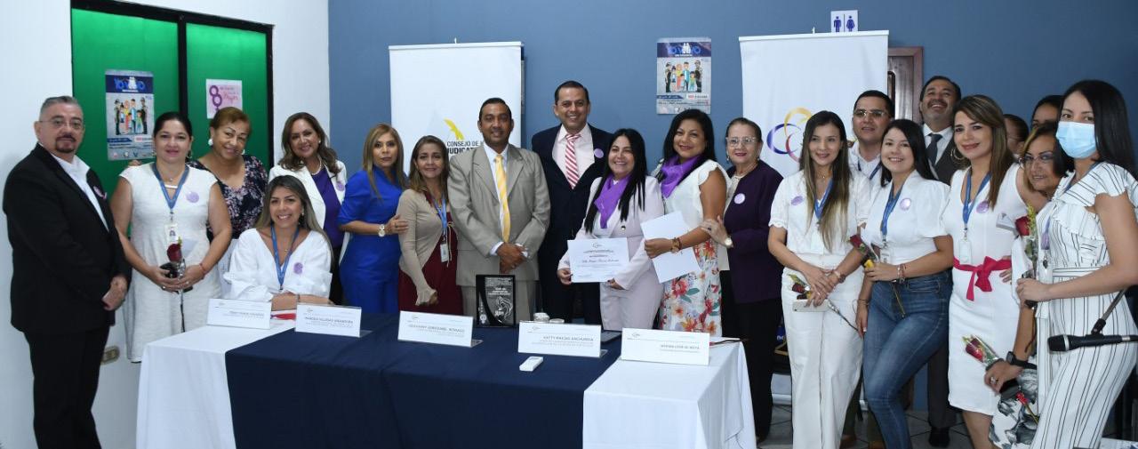 La Dirección Provincial del Consejo de la Judicatura (CJ) de Manabí conmemoró el Día Internacional de la Mujer con un acto en el que participaron jueces y servidores de las Unidades Judiciales de Violencia contra la Mujer.