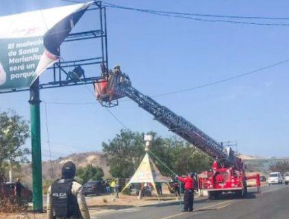 Una persona sufrió una descarga eléctrica cuando trabajaba en una valla publicitaria en el sector de San Mateo, en Manabí.