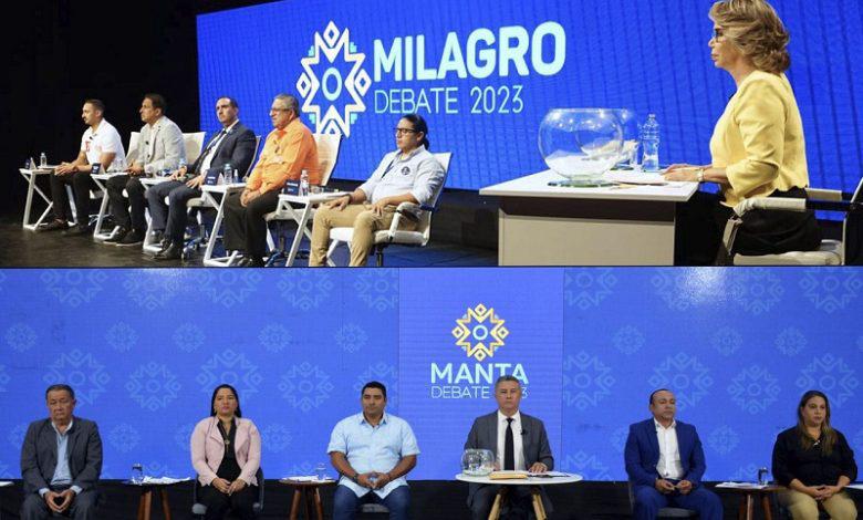 En los cantones Durán, Milagro y Manta, donde participaron más de ocho candidatos, se efectuaron dos bloques de debates con una una hora y media de duración cada uno, con igual numero de participantes en cada grupo. Mientras que en Chone, con siete candidatos a la alcaldía, el debate