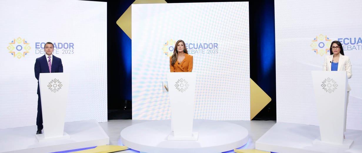 El Consejo Nacional Electoral (CNE) realizó, este 1 de octubre, Ecuador Debate 2023 correspondiente a la Segunda Vuelta de las Elecciones Anticipadas. El encuentro fue transmitido en cadena nacional de radio, televisión y plataformas virtuales con una duración de dos horas.