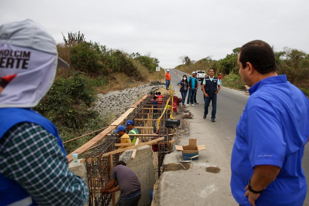 El prefecto de Manabí, Leonardo Orlando, en compañía de Diego Rosero, Gerente Zonal del Banco de Desarrollo del EcuadorBDE-, supervisó este viernes 29 de septiembre los trabajos de rehabilitación de la vía de integración La Crucita Río Bravo - Manantiales Cantagallo - Boca de Cayo, una