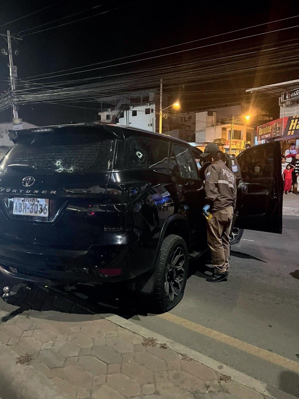 Luis Banda, jefe del Distrito de Policía Manta, informó que después del atentado, dos automotores fueron hallados. El primero se trata de un Nissa X-TRAIL, de placas ICP0435, color plomo. Este fue encontrado en el sector El Arroyo Azul con una pistola, una alimentadora y varias vainas percutidas.