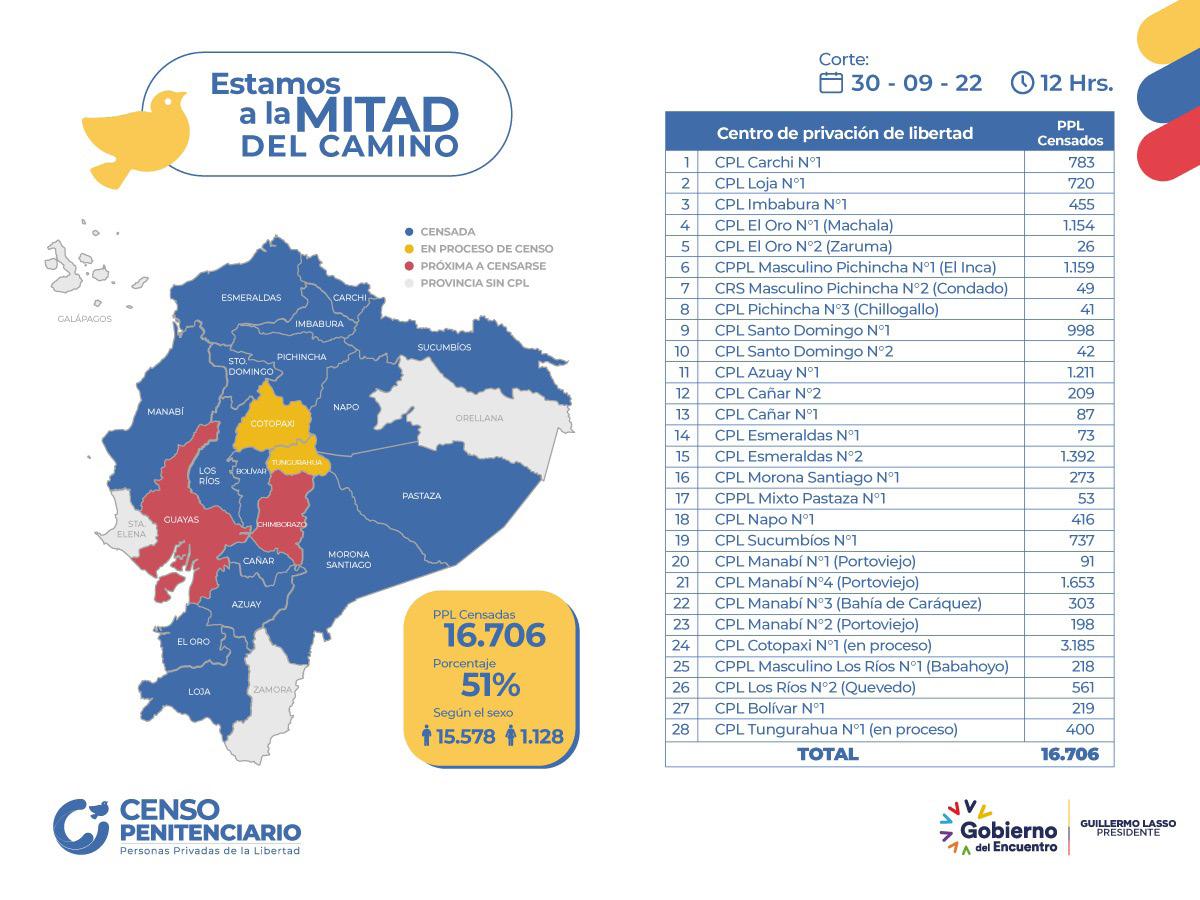 Para el sábado 1 de octubre se realizo el censo en tres CPL de Cotopaxi y desde el viernes 7 de octubre se realizará en los cinco recintos del Centro Penitenciario del Guayas.