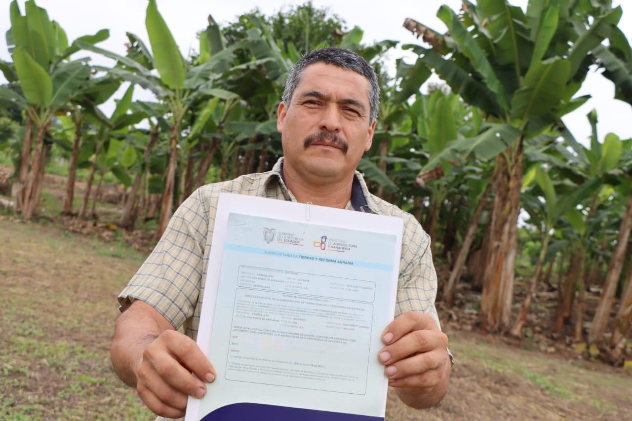 Durante la visita a Esmeraldas, Bernardo Manzano también entregó 100títulosde propiedad de tierras. “El desarrollo de las agricultura inicia con la propiedad de la tierra”, dijo. Los productores además re cibieron kits de cacao, que contienen fer tilizantes edáficos, fertilizantes foliares, fungicidas e insecticidas. Les servirá para aumentar los más de 525 mil quintales de cacao que producen al año la provincia. Además, obtuvieron USD 21 mil en crédi tos de parte de BanEcuador para impulsar actividades agropecuarias en la zona.