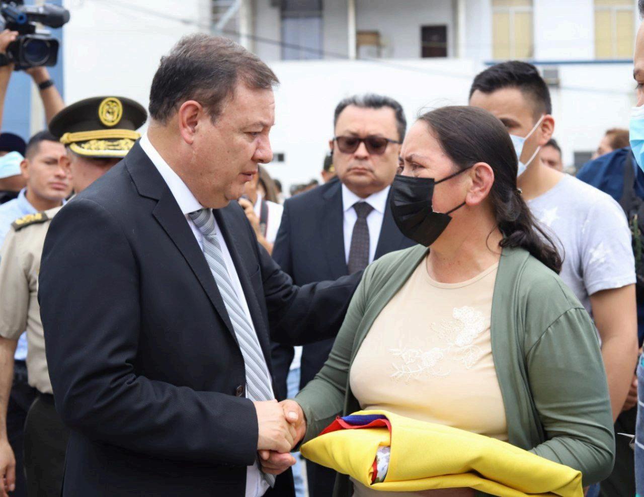 Al mismo tiempo, se solidarizó con los familiares del sargento segundo Eduardo Perlaza, quien la madrugada de hoy falleció tras enfrentarse con delincuentes que asal taron una gasolinera, para ambos hogares mostró su respaldo y el de la institución policial.