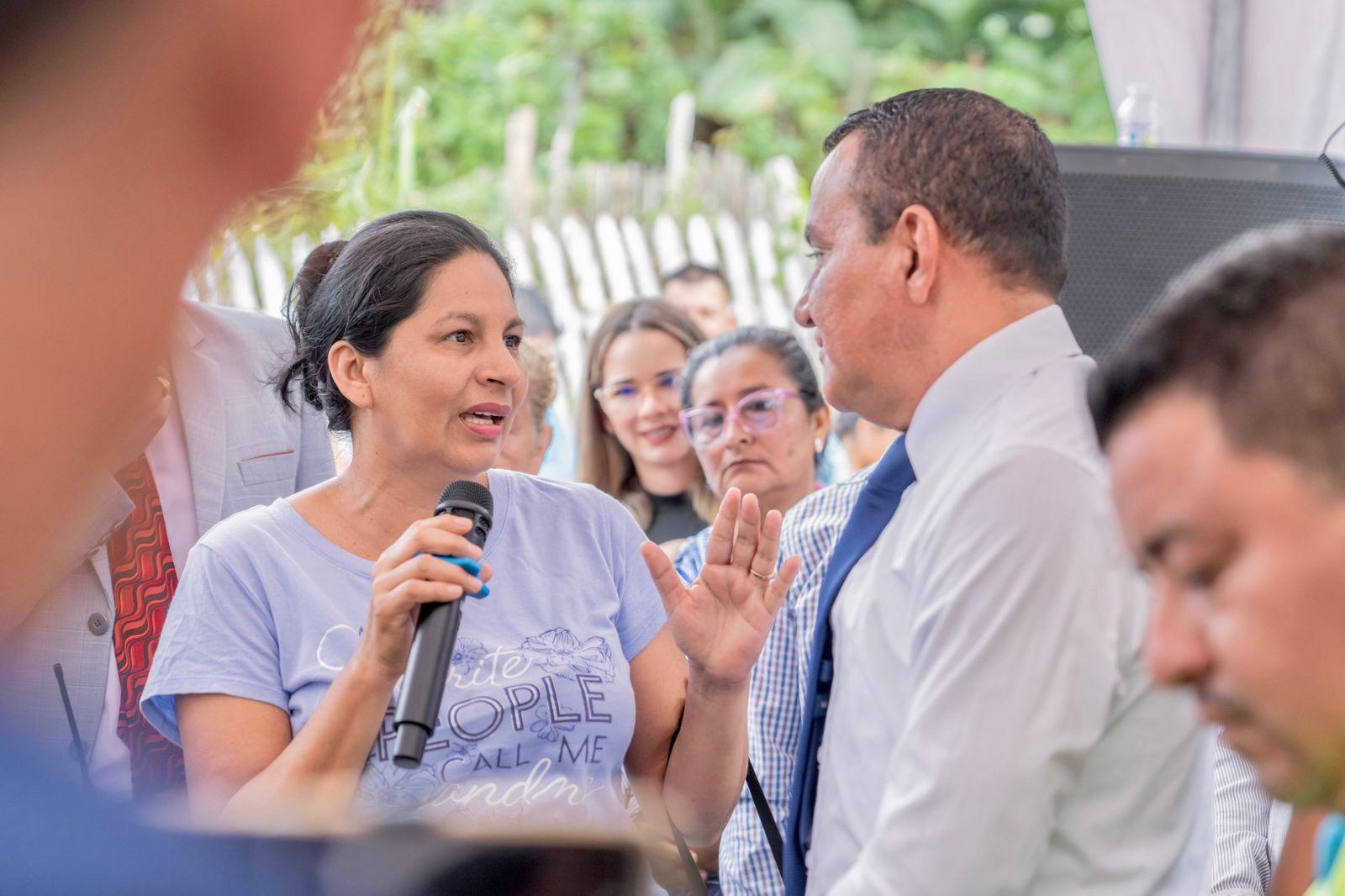 Juana Lucas, del barrio Simón Bolívar, mostró su emoción y agradecimiento al prefecto por esta obra que beneficia a todos sin distinción.