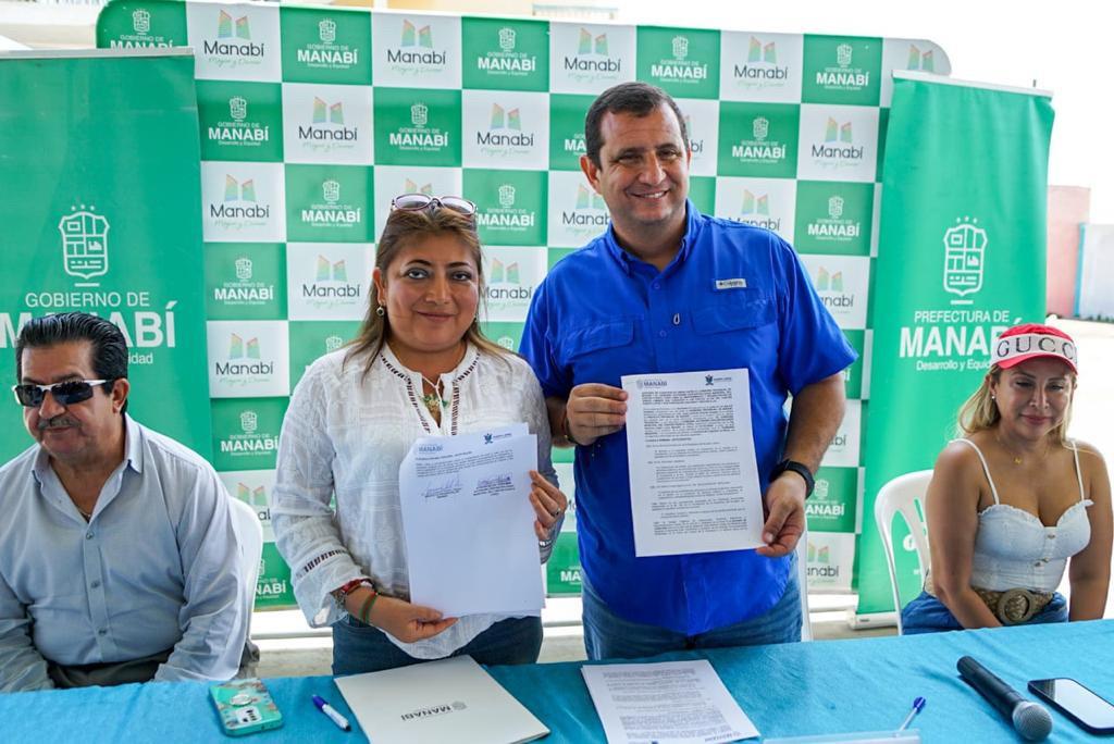 Durante el evento se suscribió el convenio entre el prefecto de Manabí, Leonardo Orlando y la alcaldesa de Puerto López, Verónica Lucas, para la intervención de obras y proyectos viales en las dos parroquias del cantón Salango y Machalilla.