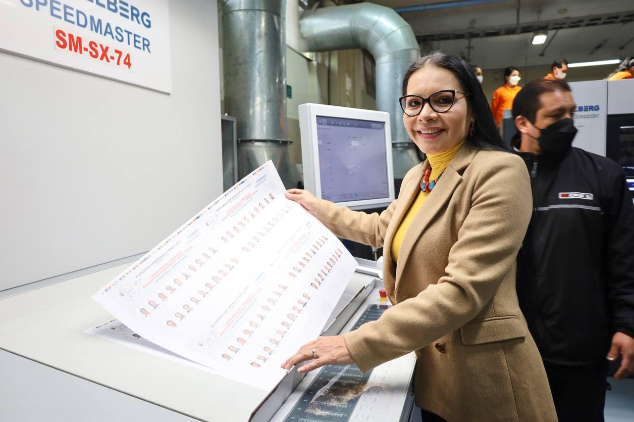 El acto se realizó con la presencia de me dios de comunicación, autoridades del Consejo Nacional Electoral (CNE) y del IGM. La presidenta del órgano electoral, Diana Atamaint, destacó la importancia de este hecho para el desarrollo de los co micios e indicó que se iniciará con la im presión de papeletas para la elección del CPCCS. “Cumplimos hoy un nuevo hito de las Elecciones 2023 al iniciar la impresión de las papeletas electorales desde la Planta de Artes Gráficas del IGM, una institución militar con más de ocho décadas de expe riencia y con una amplia trayectoria técni ca y logística en Ecuador”, manifestó.