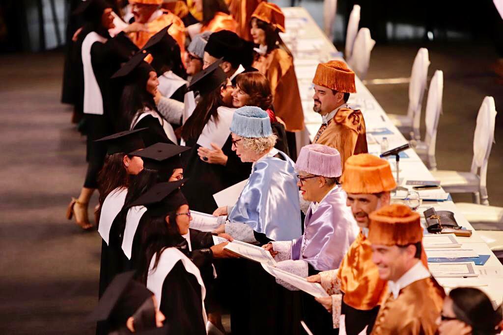 León, exalumna del Máster en Comunicación Transmedia de esta universidad y reconocida periodista y presentadora de noticias de Teleamazonas (quienes ejercieron el rol de maestros de ceremonias) dieron paso al momento cúlmine de la jornada, cuando se entregaron -uno a uno- en el escenario principal los diplomas conmemorativos a todos los concurrentes. Quienes participaron desde sus casas pudieron descargarlos de manera virtual.