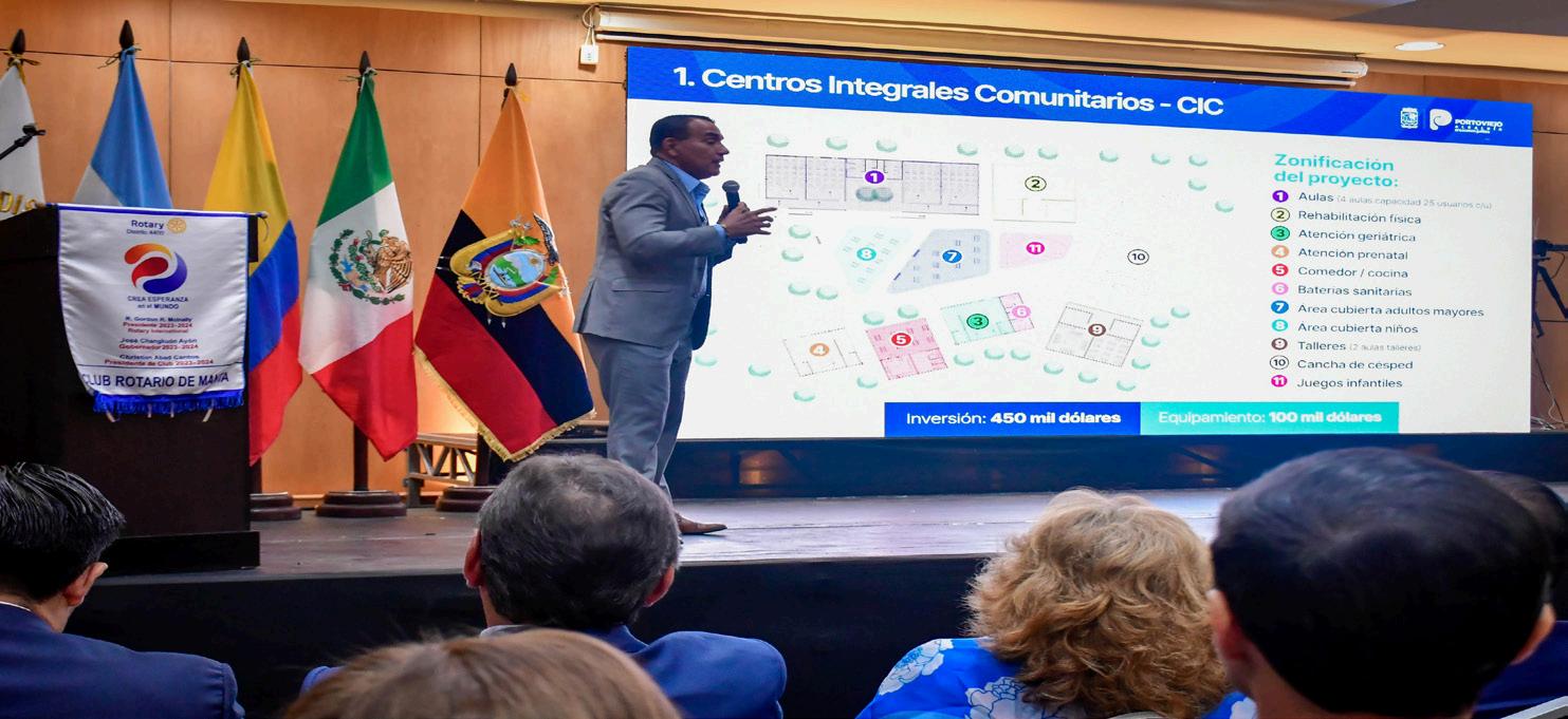 En un evento que subrayó la importancia de los gobiernos seccionales como aliados estratégicos en las áreas de interés de Rotary International, nuestro alcalde, Javier Pincay, se convirtió en la voz del progreso y desarrollo durante su ponencia, con una presentación que capturó la atención de líderes y visionarios del país y el mundo.