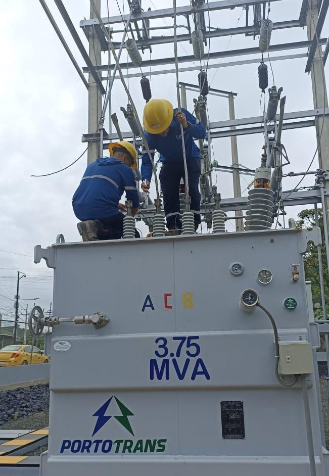 Técnicos de CNEL EP realizan prueban a los equipos eléctricos de la subestación de bombeo, para verificar su buen estado de funcionalidad.