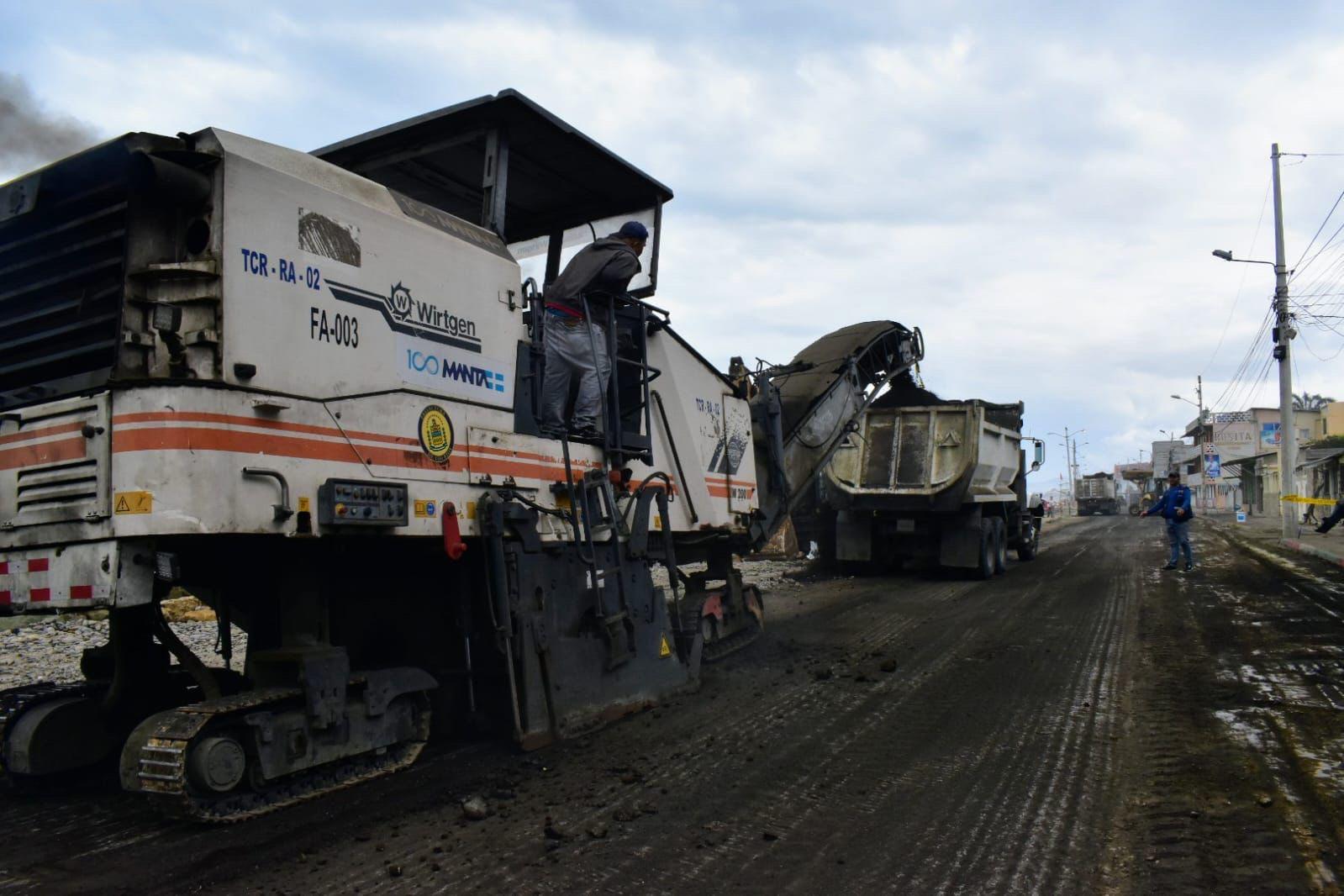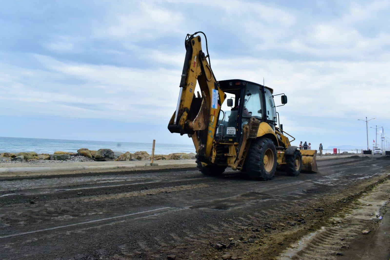 La contratista Ciudad Rodrigo está realizado el fresado de la capa de rodadura en una distancia de 400 metros de longitud en el malecón de Crucita de Portoviejo.