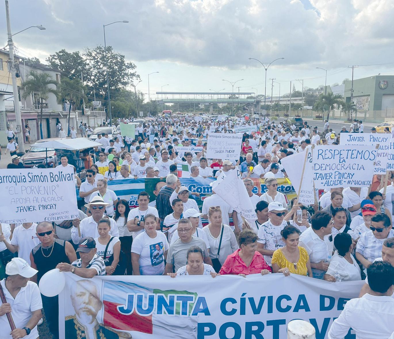 La Junta Cívica del Pueblo lidero una marcha en apoyo al alcalde de Portoviejo, Javier Pincay, quien fue sancionado por el Tribunal Contencioso Electoral (TCE).