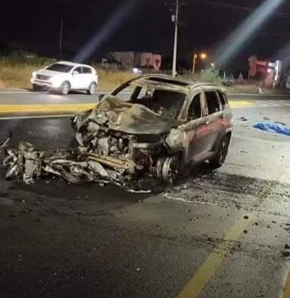 Ambos vehículo se incineraron y miembros del Cuerpo de Bomberos tuvieron que extinguir el fuego.