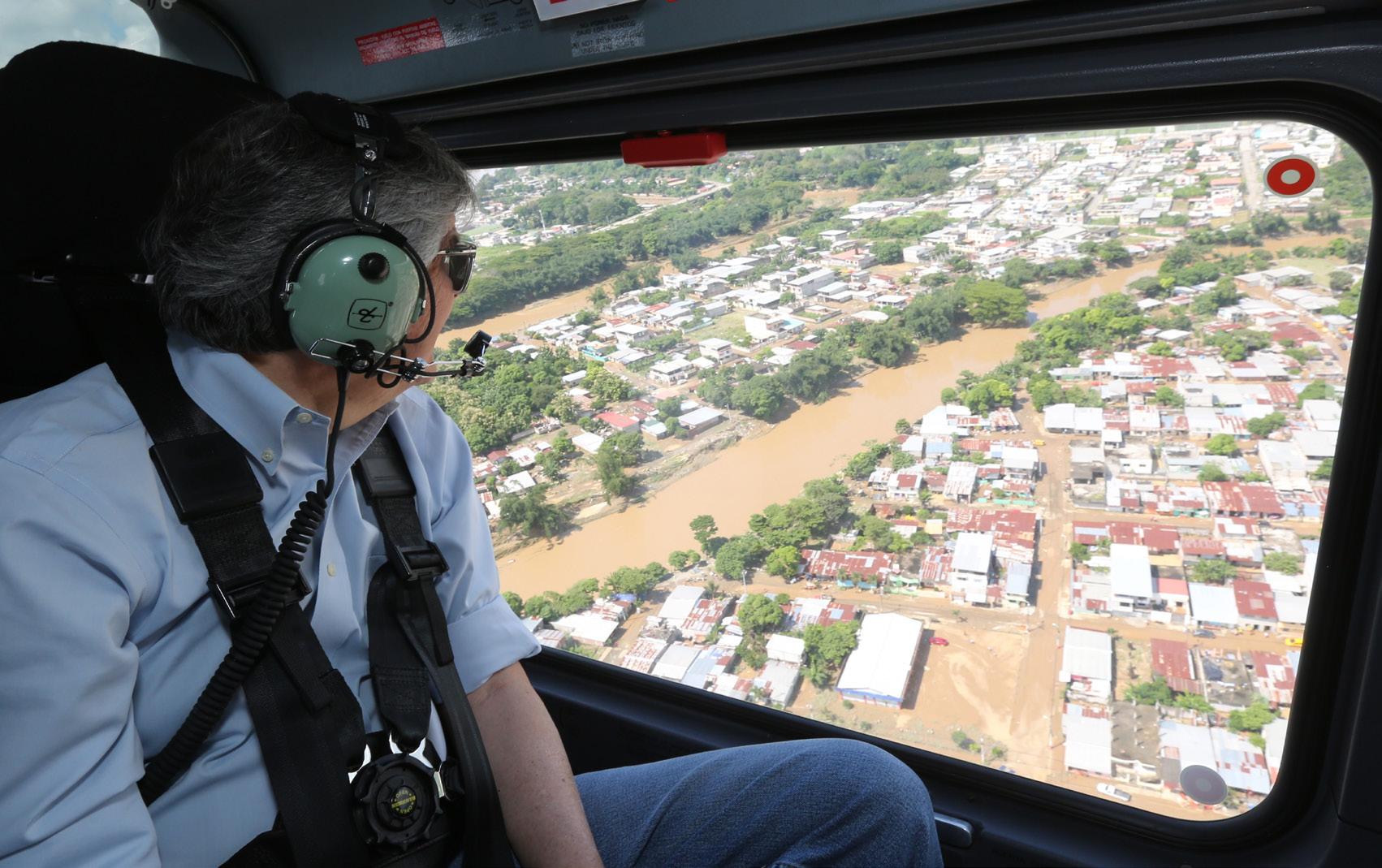 El Presidente Lasso sobrevuela zona afectada y coordina acciones de ayuda tras inundaciones