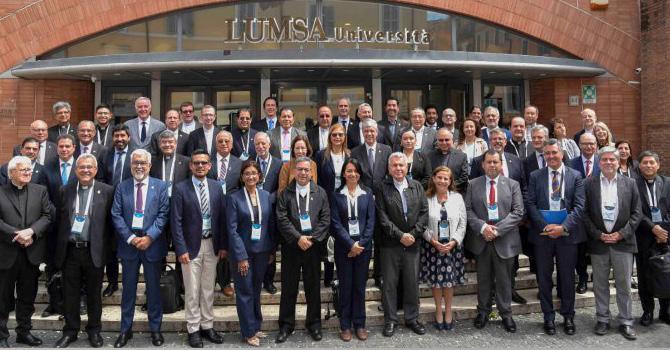 En el Aula Teatro de la LUMSA y con la participación de más de 50 rectores, además de vicerrectores e invitados especiales, comenzó la jornada académica que inició con las palabras del Presidente de Oducal, Ing. Rodolfo Gallo Cornejo quien dio la bienvenida y brindó un discurso en el que hizo especial hincapié al trascendente hito que significa este encuentro en conmemoración de los 70 años y al necesario entendimiento con el Dicasterio para la Educación y la Cultura. En ese marco, expresó su agradecimiento al Cardenal José Tolentino de Mendonça por la cálida acogida a la propuesta de mantener una reunión para profundizar el trabajo fraterno que se viene realizando.