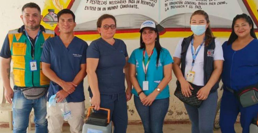 Personal de salud de la Prefectura de Manabí está colaborando en la campaña “Vacunación contra el Sarampión, Rubéola y Poliomielitis Ecuador 2023”, que comenzó el 2 de mayo y es liderada por el Ministerio de Salud junto al Ministerio de Educación.