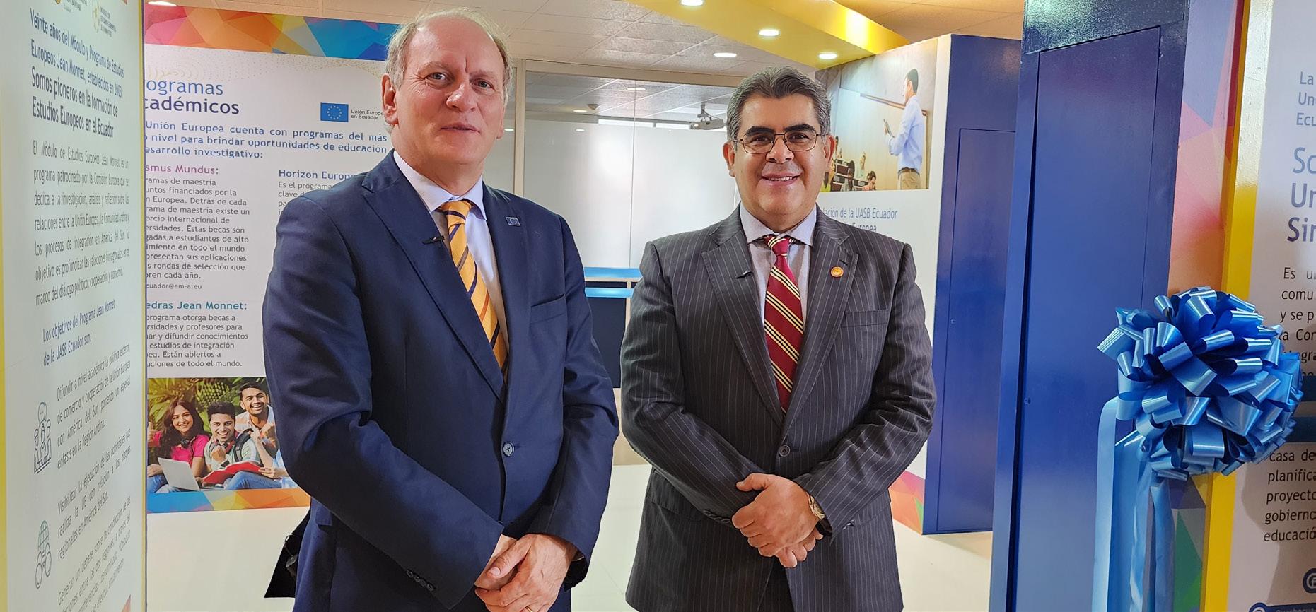Charles-Michel Geurts, Embajador de la UE en Ecuador (izq.) junto a César Montaño Galarza, rector de la Universidad Andina Simón Bolívar