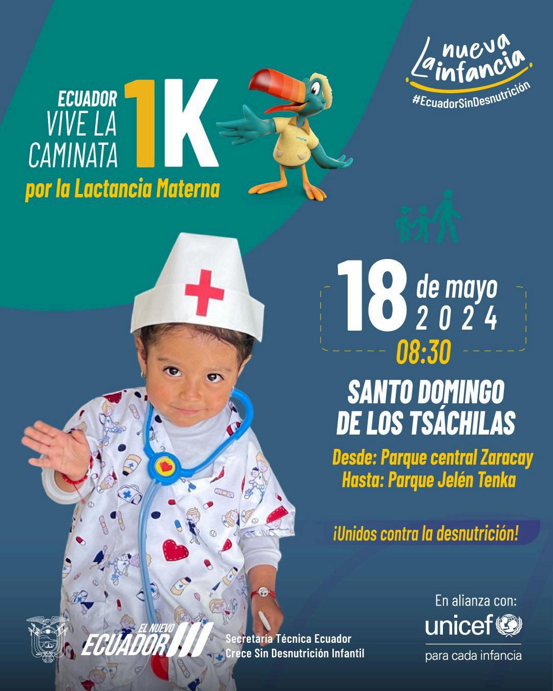 El próximo 18 de mayo, de manera simultánea, en nueve ciudades del Ecuador se realizará la “Caminata por la Lactancia Materna: Unidos Contra la Desnutrición”, actividad que promueve la protección de la lactancia materna en niños menores de seis meses y así prevenir la desnutrición crónica infantil.