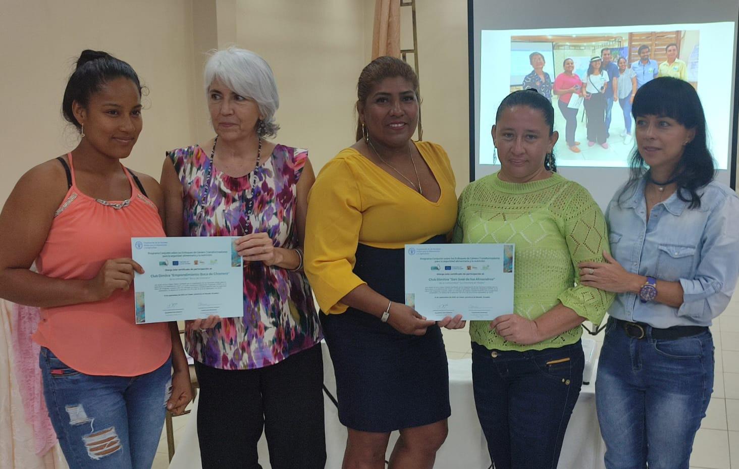 Esto es parte de los avances que FAO, FIDA, PMA y el MAG presentaron este martes en Chone, durante el Foro Clubes Dimitra, un espacio implementado para lograr la equidad del enfoque de género y con ello trabajar en la soberanía alimentaria, ejecutada con pequeños productores agropecuarios de las parroquias San Antonio, Eloy Alfaro, Boyacá y Canuto, del cantón Chone, donde se han empoderado 20 comunidades rurales.