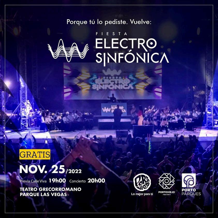 La Fiesta Electrosinfónica regresa al Teatro Gre corromano del parque Las Vegas, este viernes 25 de noviembre; para hacer vibrar una vez más a los portovejenses con la fusión de los grandes hits de la música electrónica interpretados con la orquesta sinfónica.