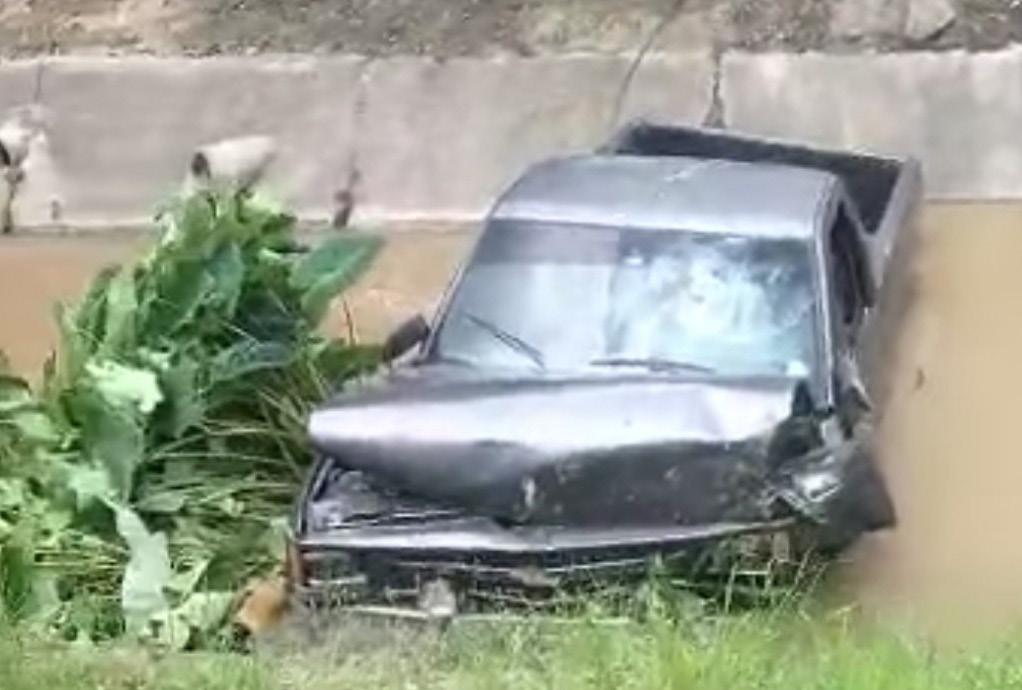 Un hombre terminó con la camioneta que conducía en un canal de agua en la ciudad de Portoviejo, provincia de Manabí, la tarde de este martes 7 de febrero de 2023.