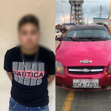 En la ciudadela Primavera 2, policías del Distrito Durán, a las 17h00 del lunes interceptaron el vehículo Chevrolet Aveo, rojo de placas GCA-7703, y aprehendido el conductor Alexis Jazmani R. M., presunto integrante de un grupo delincuencias dedicados a cometer delitos de extorsión, mediante la modalidad de vacunas.