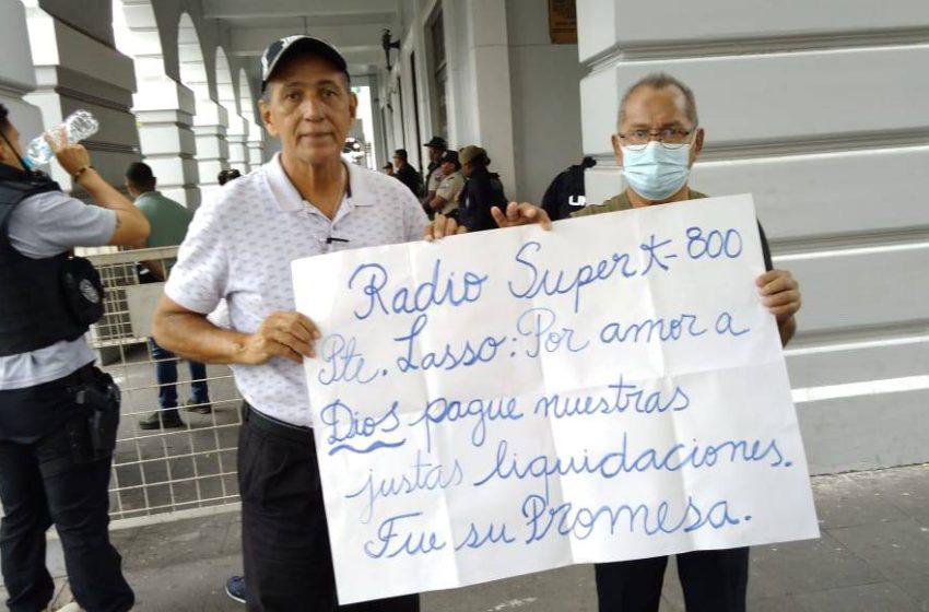 Varios extrabajadores de algunos de los medios incautados por el Estado se dieron cita en los exteriores de la Gobernacion del Guayas, don de se encontraba el presidente Guillermo Lasso, para pedir a gritos al Gobierno que cancele sus liquidaciones, pendientes por más de tres años.
