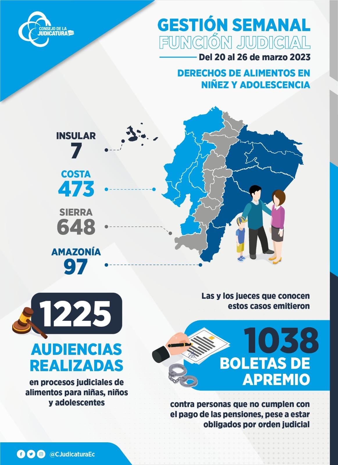 Del 20 al 26 de marzo, los jueces que conocen estos casos emitieron 1038 boletas de apremio contra personas que han incumplido el pago de las pensiones.