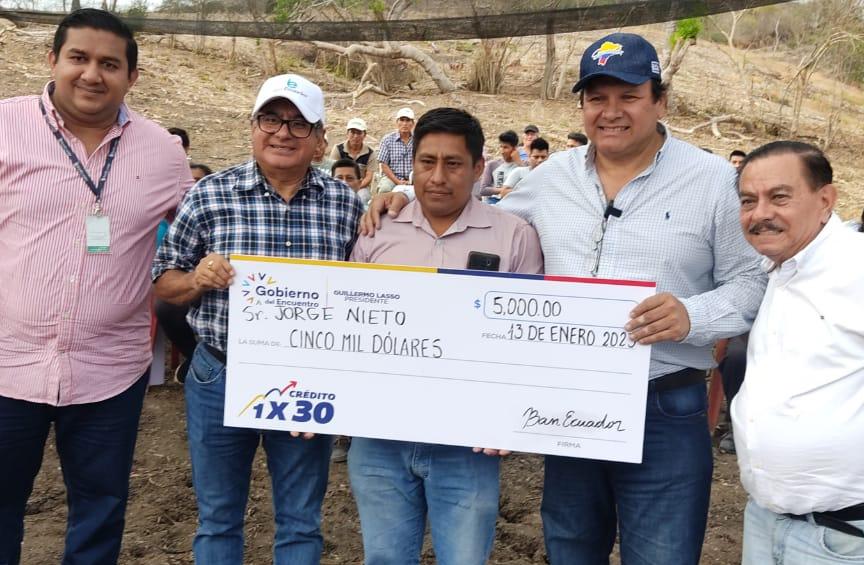 Más tarde, en Jipijapa, el Ministro entregó 25 albarradas que beneficiarán a 40 familias, así como cheques del Proyecto Campo Seguro, y créditos de BanEcuador.