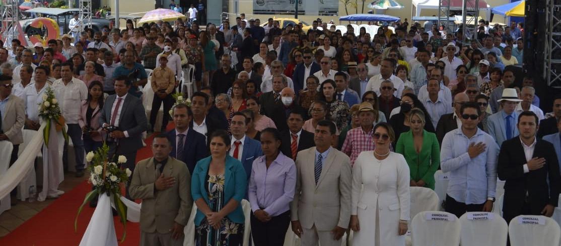 En la sesión solemne desarrollada en la pla za cívica de Calceta, la gerente de la zonal Manabí del BDE, María Dolores Menéndez hizo la entrega del financiamiento al alcal de Walther Cevallos.