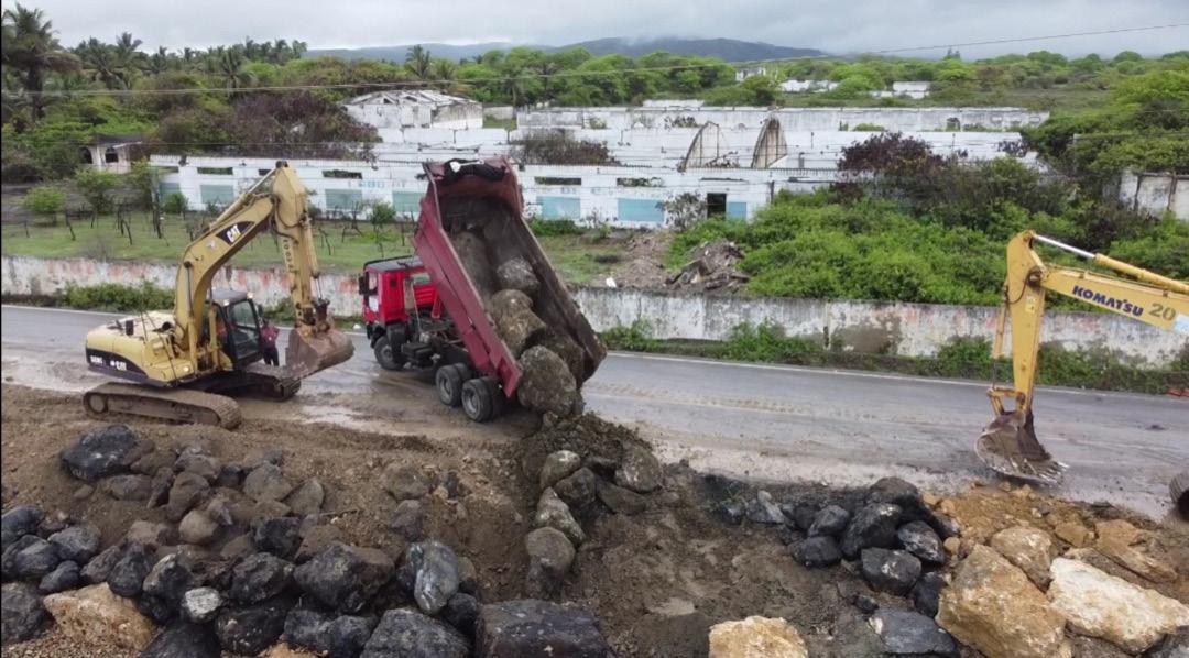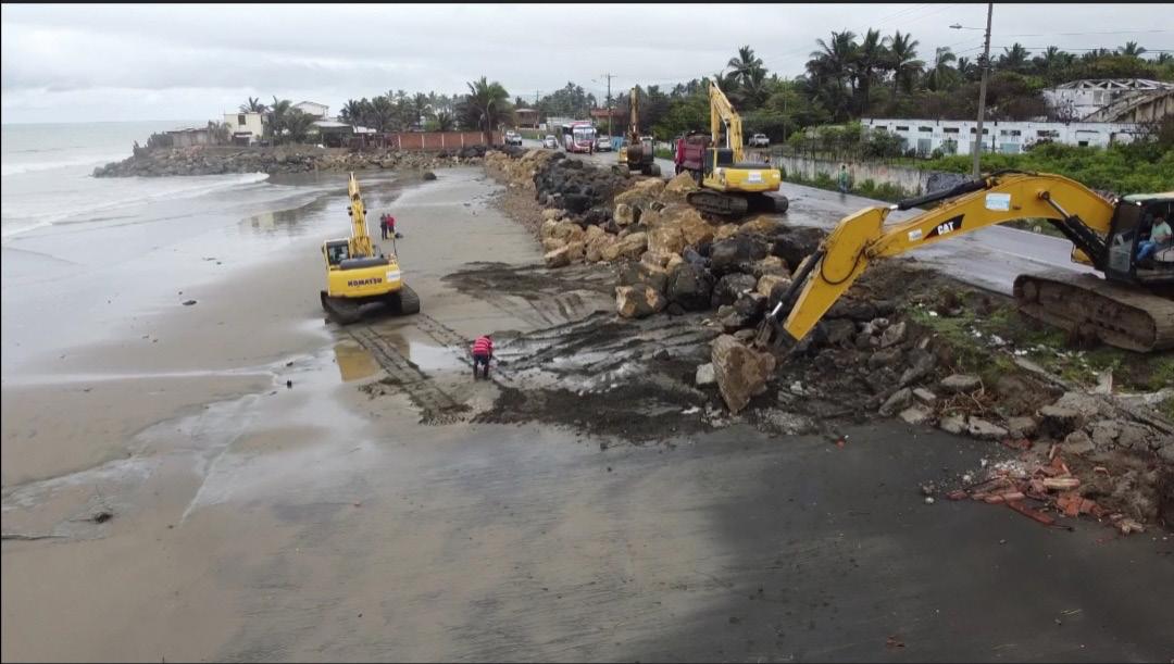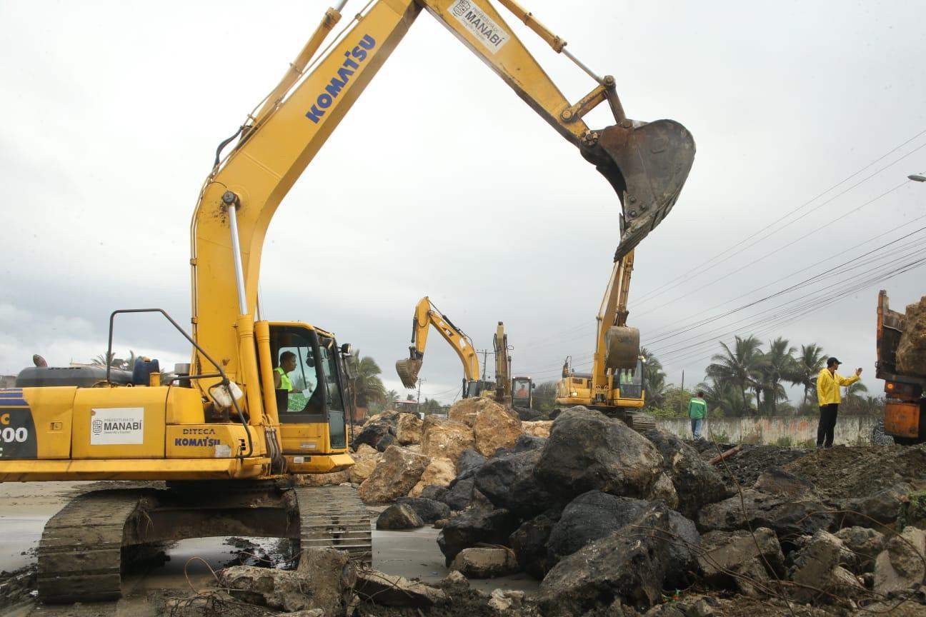 La Prefectura de Manabí continúa con la colocación de piedra escollera en el sector de Las Gilces de la parroquia Crucita, cantón Portoviejo.