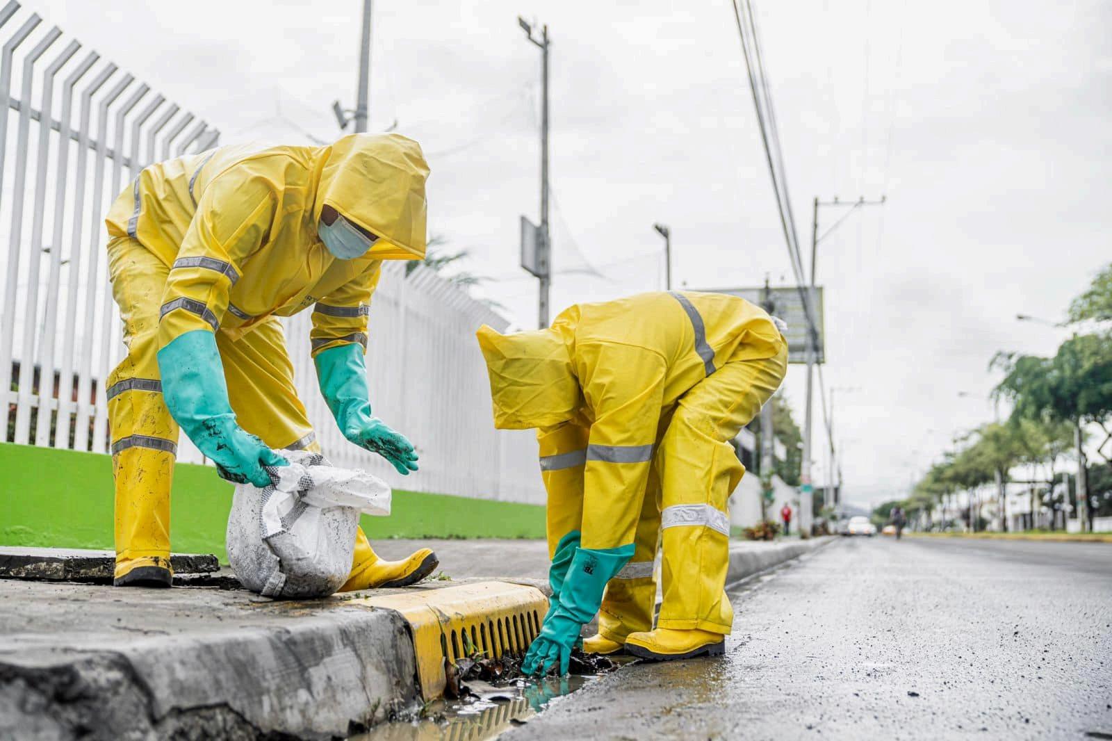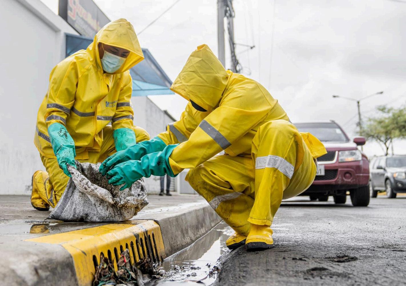 Más de 50 personas entre bomberos, policía municipal, personal de la dirección de Riesgos y Sostenibilidad Ambiental, obreros y personal de Portoaguas trabajan en Portoviejo como parte del Plan de Acción Invernal (PAI).