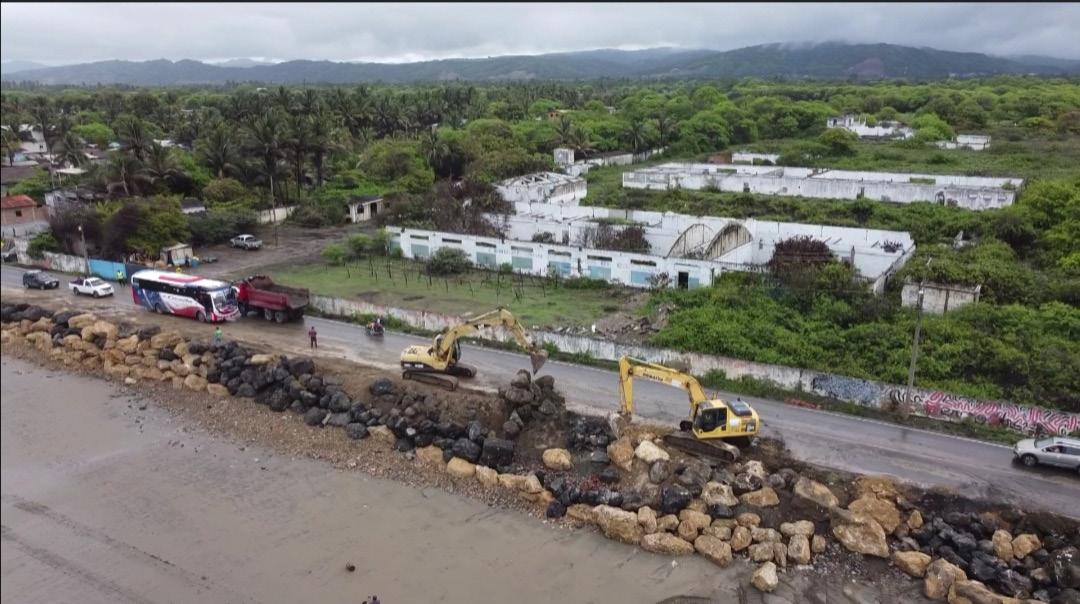 En este sector, la institución viene laborando en la protección del perfil costero, específicamente en un tramo de aproximadamente 250 metros lineales afectado por el fuerte oleaje, incluida parte de la estructura de la vía Los Arenales – La Boca.