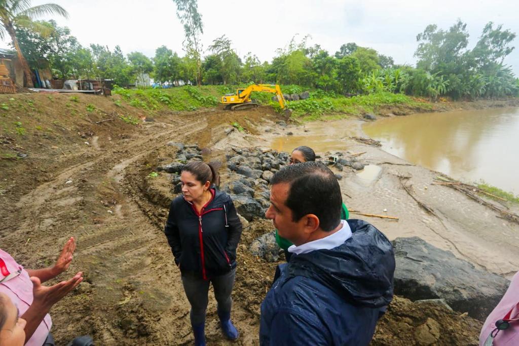 La autoridad provincial, junto al personal técnico de la institución, inició su recorrido en el sector La Mocora en la zona conocida como “La Casa del Maní”, donde el equipo de la dirección de Riego y Drenaje junto con la Dirección de Vialidad realizan la rectificación del cauce del río Portoviejo, el cual lleva un 75% de avance.