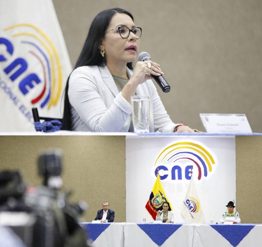 La presidenta del Consejo Nacional Electoral (CNE) Diana Atamaint, junto a los consejeros José Cabrera Zurita y Esthela Acero ratificaron, este jueves 10 de agosto, que se mantienen todas las actividades planificadas en el calendario electoral en el cual consta el 13 de agosto como fecha de Debate y el 20 de agosto como día de sufragio.