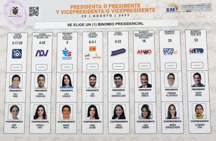 De igual manera, la organización política “Construye” puede hacerlo con el cambio de la persona que ocupara el lugar de Villavicencio hasta antes de la elección. Al contar con el 100% de la papeleta de binomio impresa, ésta se mantiene con la fotografías de Fernando Villavicencio y Andrea González, y los votos serán computados a su reemplazo.