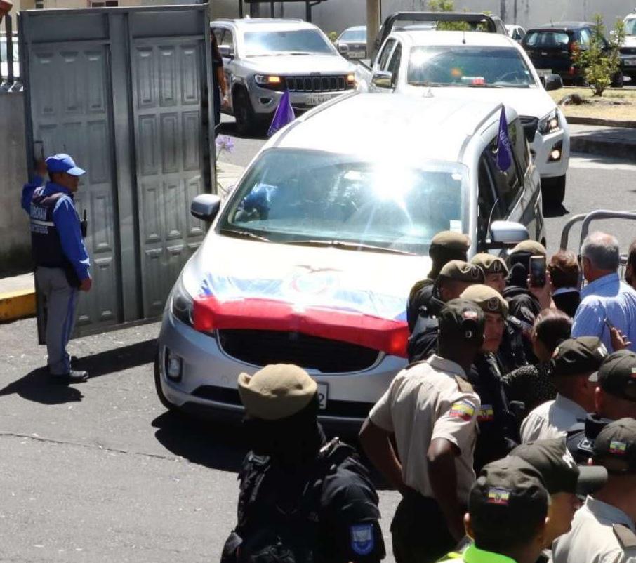 El cuerpo de Fernando Villavicencio, el candidato presidencial que fue asesinado la tarde del 9 de agosto de 2023, fue sacado a las 11:14 de la morgue de Quito y trasladado a la funeraria Memorial, en el norte de Quito.