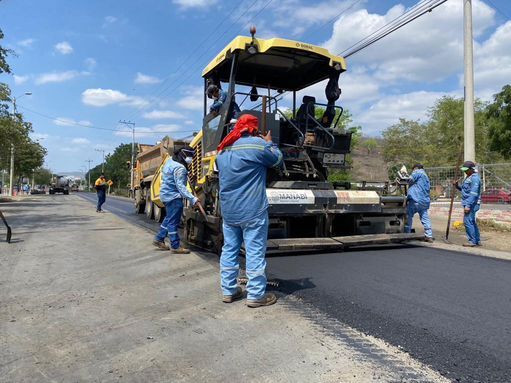 La empresa pública Manabí Vial realiza un mantenimiento en la vía delegada Manta – Portoviejo, con trabajos de bacheo mayor con mezcla asfáltica en el margen derecho de la vía.